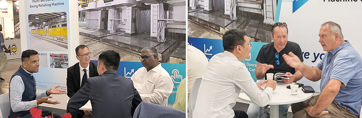 展會(huì)上,科達(dá)超高速線(xiàn)鋸以0.5–0.6mm極窄鋸縫、出材率提升15%的實(shí)測(cè)表現(xiàn),成為展會(huì)焦點(diǎn)。來(lái)自意大利、西班牙、希臘等國(guó)的石材企業(yè)代表現(xiàn)場(chǎng)觀(guān)摩設(shè)備,對(duì)設(shè)備的切割精度與穩(wěn)定性給予高度評(píng)價(jià)。