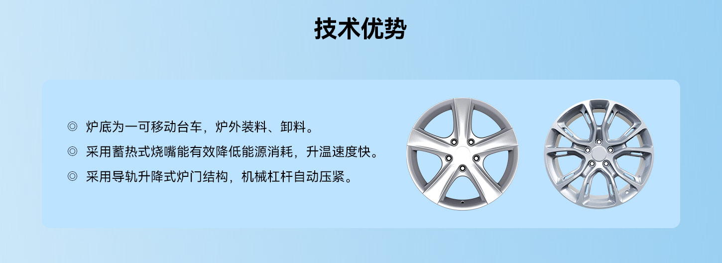 ◎ 爐底為一可移動臺車,爐外裝料、卸料。 ◎ 采用蓄熱式燒嘴能有效降低能源消耗,升溫速度快。 ◎ 采用導(dǎo)軌升降式爐門結(jié)構(gòu),機械杠桿自動壓緊。